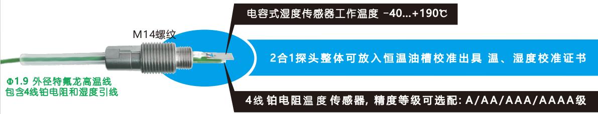 采用創(chuàng)新的 -RH 2合1溫濕度探頭,現(xiàn)場(chǎng)檢驗(yàn)溫濕箱布2合1溫濕度傳感器可減少現(xiàn)場(chǎng)布傳感器重復(fù)布點(diǎn)工作量,提高現(xiàn)場(chǎng)檢測(cè)效率,創(chuàng)新的2合1溫濕度傳感器較細(xì)的引線對(duì)檢測(cè)高溫箱時(shí)引線從門縫引出不會(huì)影響關(guān)門的密閉性,保障箱內(nèi)高溫氣體不外泄,不會(huì)因箱門引線影響箱體內(nèi)的溫濕度場(chǎng)均勻度,2合1溫濕度傳感器能勝任190℃高溫的環(huán)境檢測(cè)溫濕度,得以一次布好測(cè)點(diǎn)完成高低多溫區(qū)校準(zhǔn),具有綠色節(jié)能計(jì)量的意義。