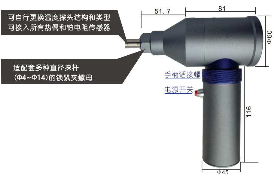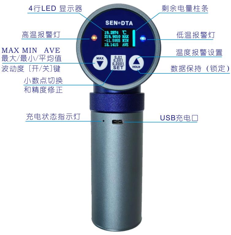 可拆卸的手柄內(nèi)置5000mAh 鋰電池,通用 USB充電口,外接電源持續(xù)測量。