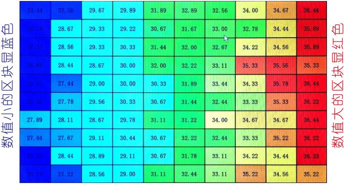 自設(shè)10行×10列=100通道云圖分析,云圖狀態(tài)下,單擊任一單元格可取消/選取該通道值取消/參與云圖分析,例如上面云圖中點擊紅色三個格取消參與云圖則其它次高值通道格取代成為紅色塊成為較大值,該功能有助發(fā)現(xiàn)想找到的點。